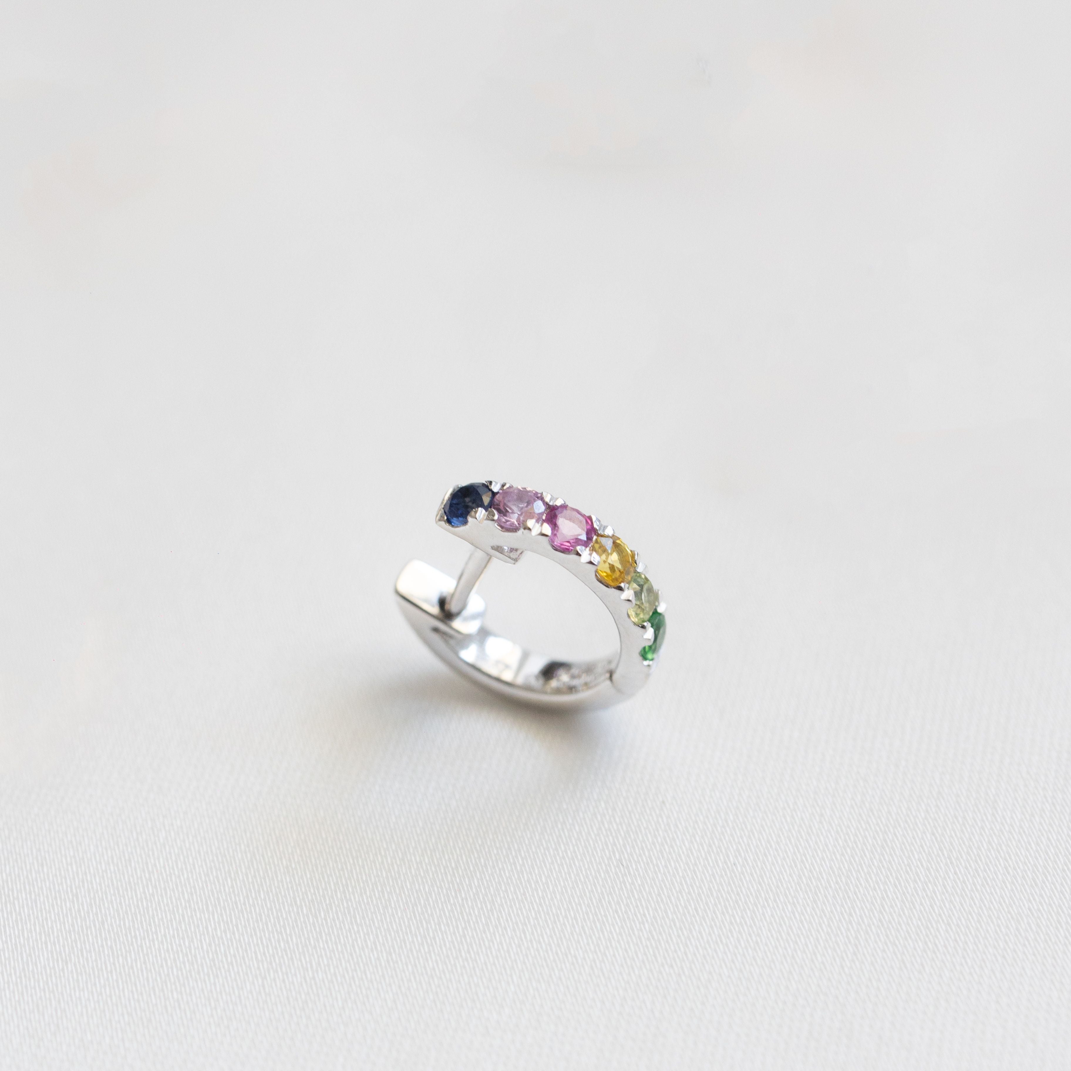 Each ring has two sides, one half in diamond and one with coloured stones, making it the most versatile eternity band.