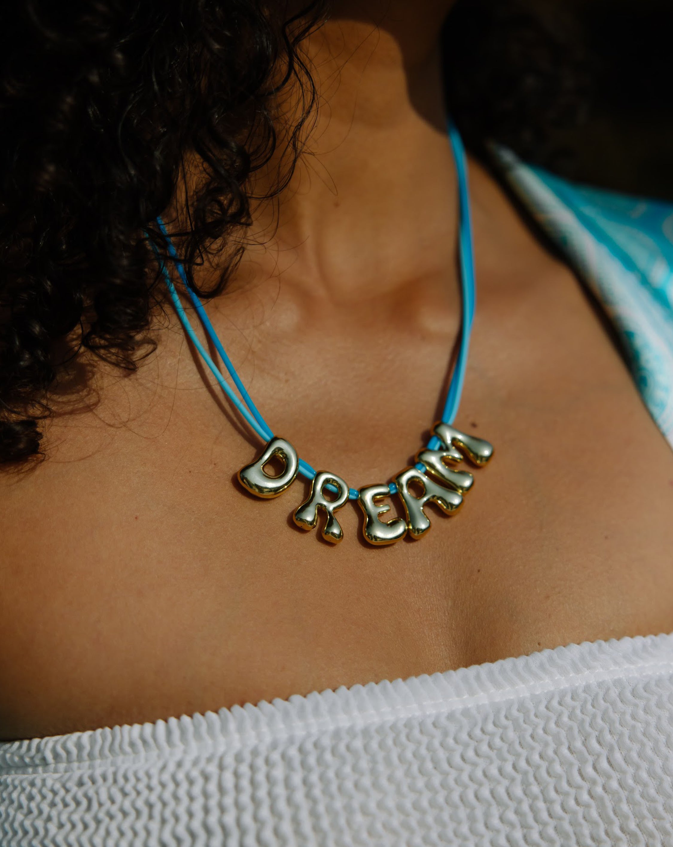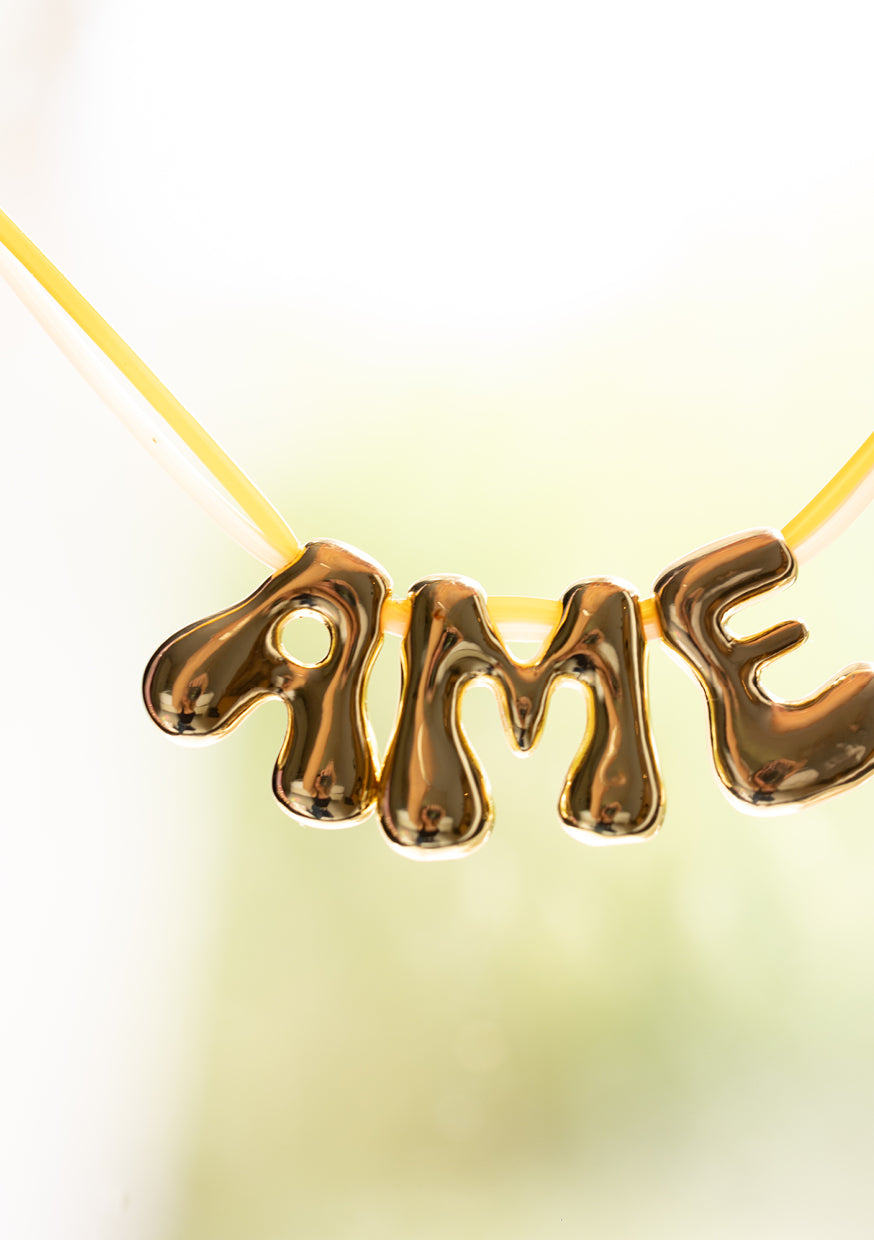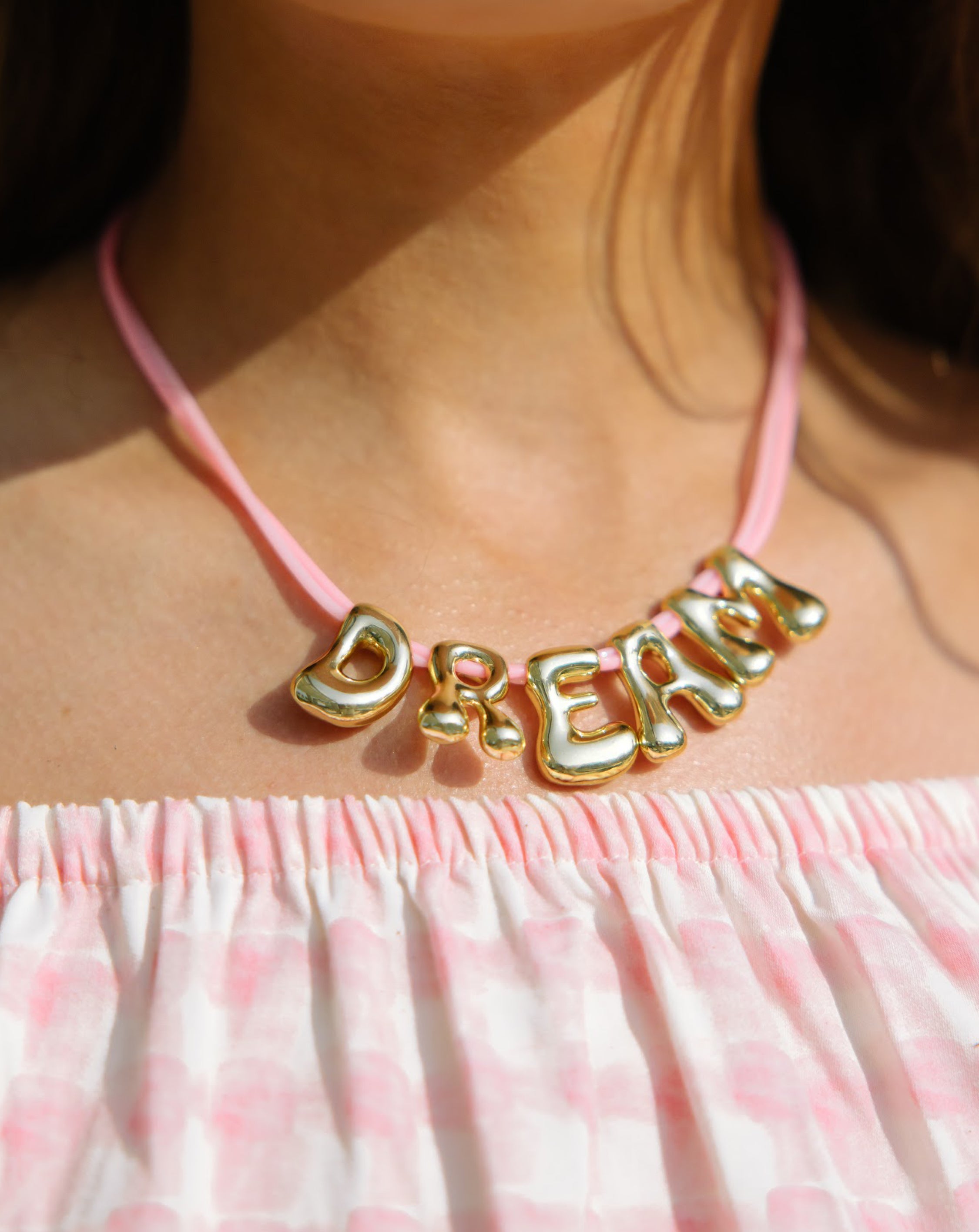 Inspired by those early days of meaningful creations, each piece holds a calm, powerful energy. Words like GRATITUDE, DREAM, JOY, LOVE, and PEACE are shaped in playful bubble letters. A tribute to childhood, made bold for today, and infused with real feeling.