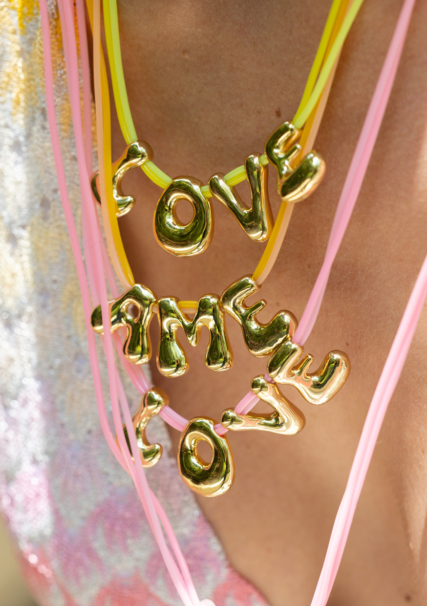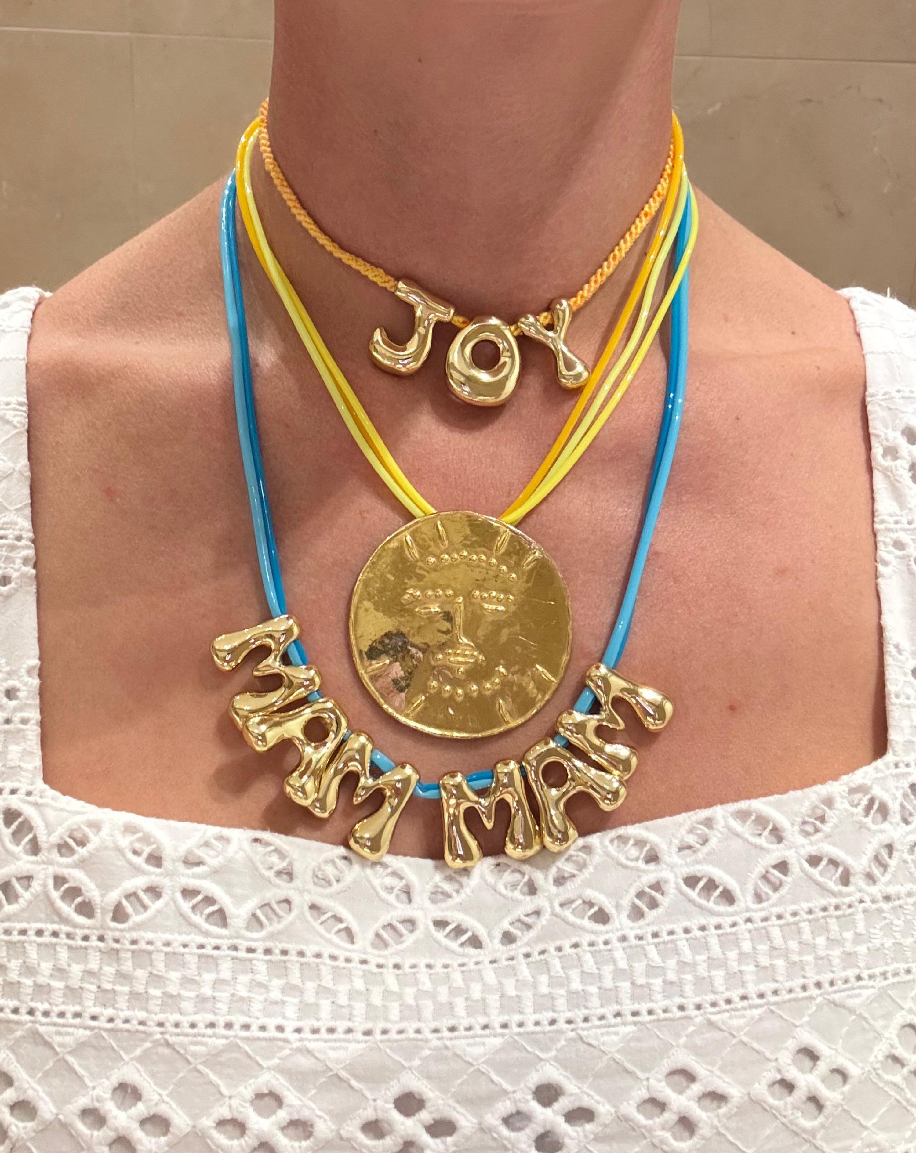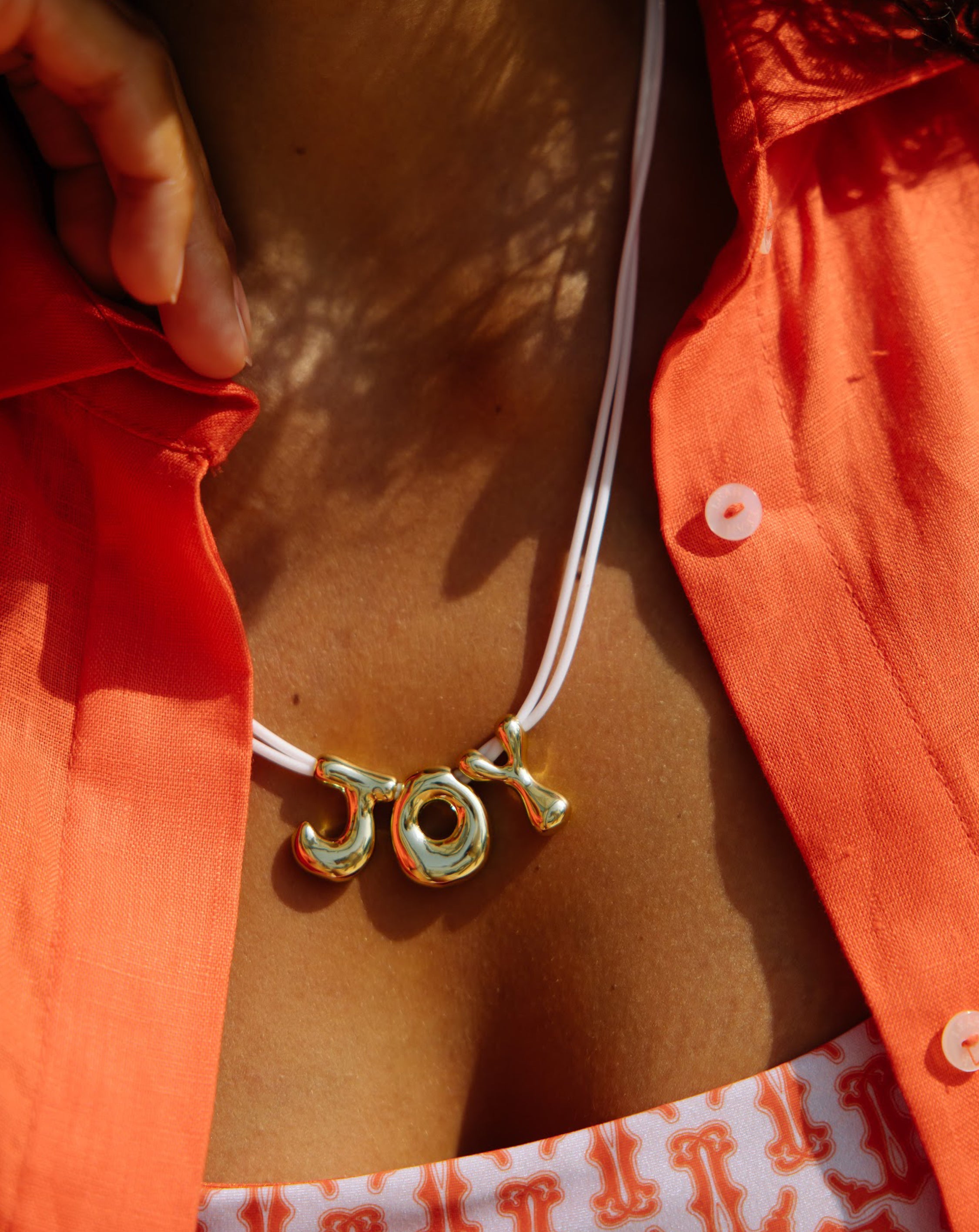 Inspired by those early days of meaningful creations, each piece holds a calm, powerful energy. Words like GRATITUDE, DREAM, JOY, LOVE, and PEACE are shaped in playful bubble letters. A tribute to childhood, made bold for today, and infused with real feeling.