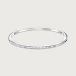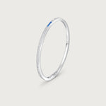 18K White Gold bangle set with Diamonds on one half and 5 Blue Sapphires on each side. Featuring our signature invisible clasp, this bracelet is seamlessly secure. Its oval shape sits comfortably around the wrist and will be rarely taken off.