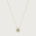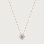 Oval clip pendant featuring a Blue centre Opal highlighted by two halos of white diamonds set in 18K White, Rose or Yellow Gold. Sold with an 18K White, Rose or Yellow Gold chain and earring extension, the Alice can be worn as a necklace, a bracelet, a wrap-around hand jewel or as an earring drop (combined with your own earring stud).