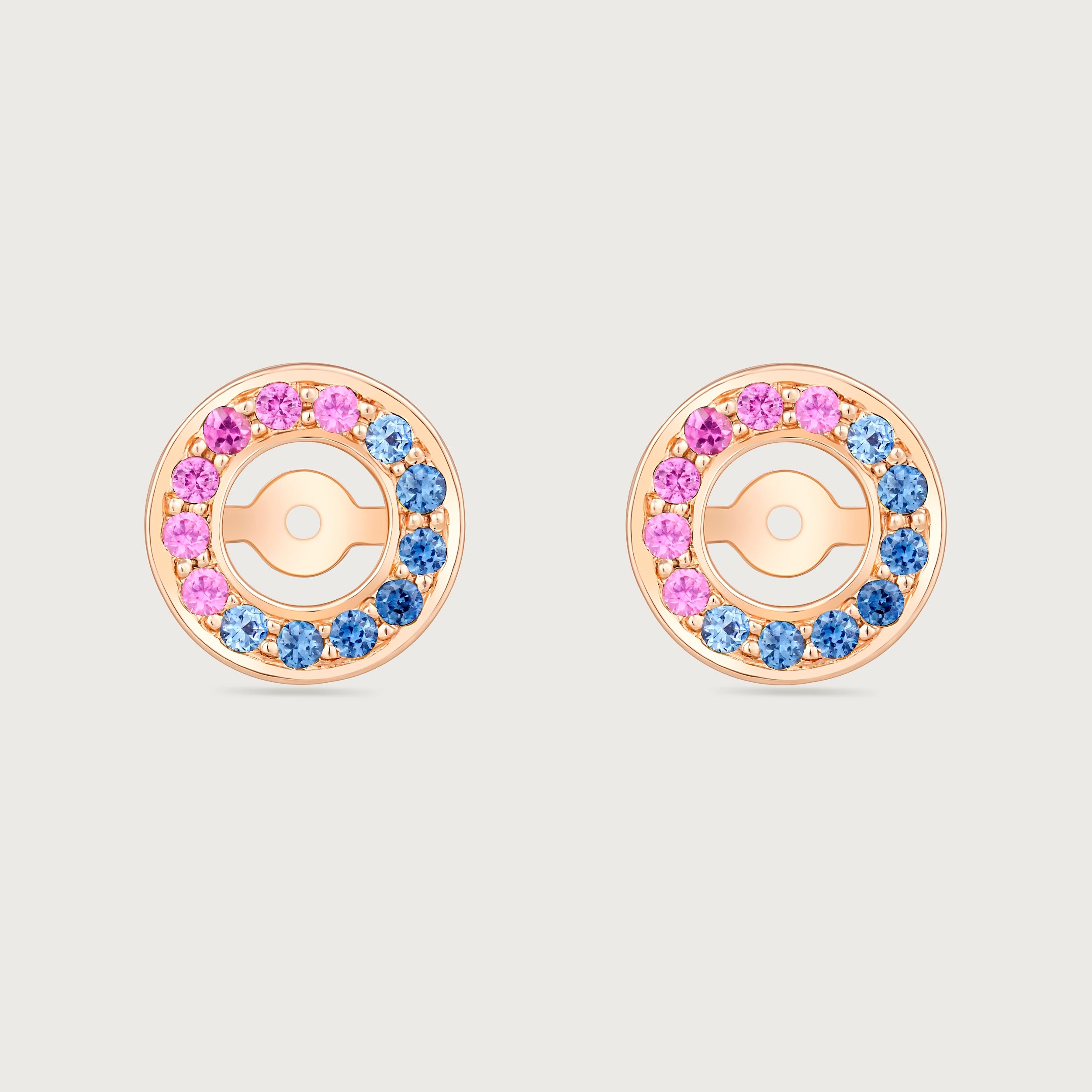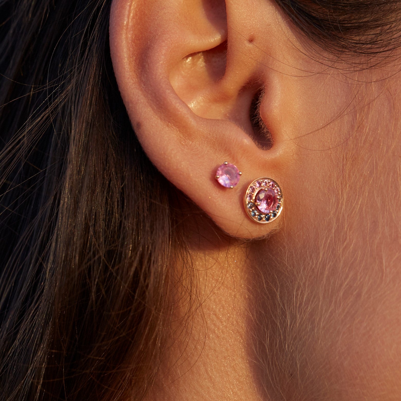 Elevate your classic solitaire studs with these round earring jackets. Mix & match these Halos with any diamond or coloured studs to add a touch of joy and playfulness. They will adapt effortlessly to your own studs (ideal stone size between 3 and 5mm diameter) simply slip the stud’s pin through the Halo.