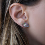 Elevate your classic solitaire stud with this eye-shaped earring jacket. Mix & match this Halo with any diamond or coloured stud to add a touch of joy and playfulness. It will adapt effortlessly to your own studs (ideal stone size between 3 and 5mm diameter) simply slip the stud’s pin through the Halo.