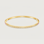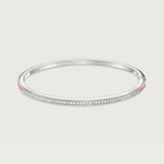 18K Yellow, White & Rose Gold bangle set with Diamonds on one half and 5 Pink Sapphires on each side. Featuring our signature invisible clasp, this bracelet is seamlessly secure. Its oval shape sits comfortably around the wrist and will be rarely taken off.