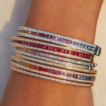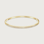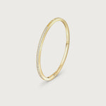 18K Yellow Gold bangle set with Diamonds on one half and 5 Yellow Sapphires on each side. Featuring our signature invisible clasp, this bracelet is seamlessly secure. Its oval shape sits comfortably around the wrist and will be rarely taken off.